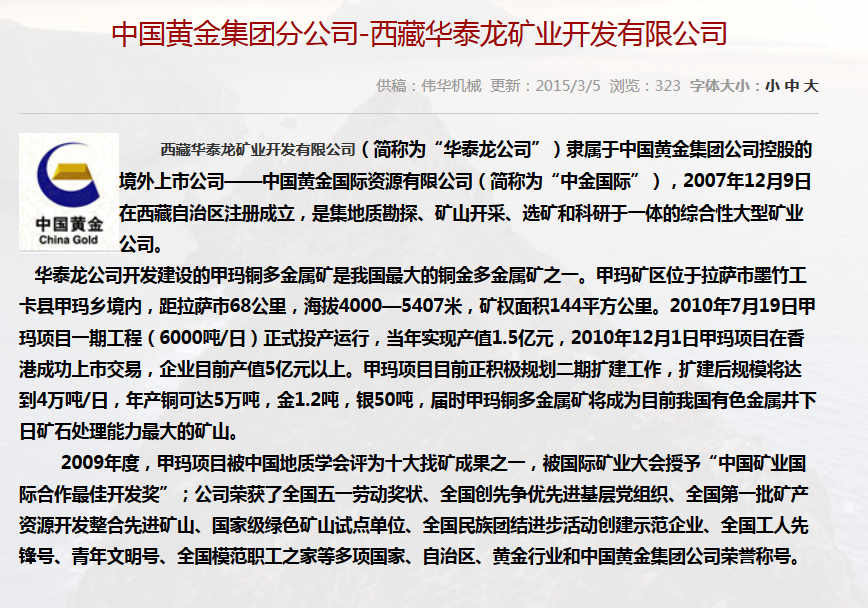 合作單位:中國黃金集團(tuán)分公司-西藏華泰龍礦業(yè)開